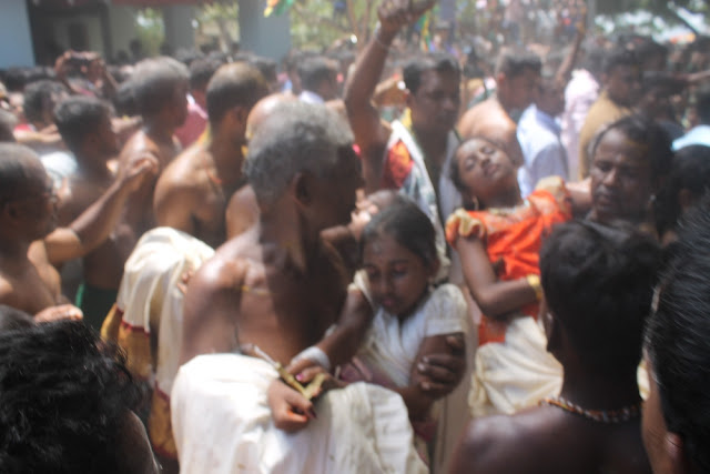 அதனைத்தொடர்ந்து ஆலயத்திற்கு ஊர்வலமாக கொண்டுசெல்லப்பட்டு அங்கு தெய்வானையம்மன் ஆலயத்திற்கு அருகில் சிறுமிகள் திருவிளக்கு ஆராத்தியெடுத்தநிலையில் அனைத்து சிறுமிகளும் மயங்கிய நிலையில் கொண்டுசெல்லப்பட்டனர்.
